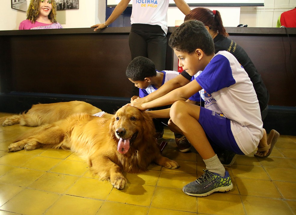 CÃES DOUTORES AUXILIAM TRATAMENTO DE ALUNOS COM DEFICIÊNCIA EM ESCOLAS PÚBLICAS DE OLINDA. PROJETO BOLINHA DE PELO LEVA SEIS CÃES DA RAÇA GOLDEN RETRIEVER PARA ESCOLAS MUNICIPAIS A PARTIR DESTA QUINTA-FEIRA (5). Crianças com deficiência que estudam em escolas públicas de Olinda passam a contar com novos aliados no cotidiano escolar. A partir deste mês de abril, seis cães adestrados auxiliam no tratamento dos alunos atendidos em salas de recurso multifuncional do município, voltadas para o tratamento desses estudantes.