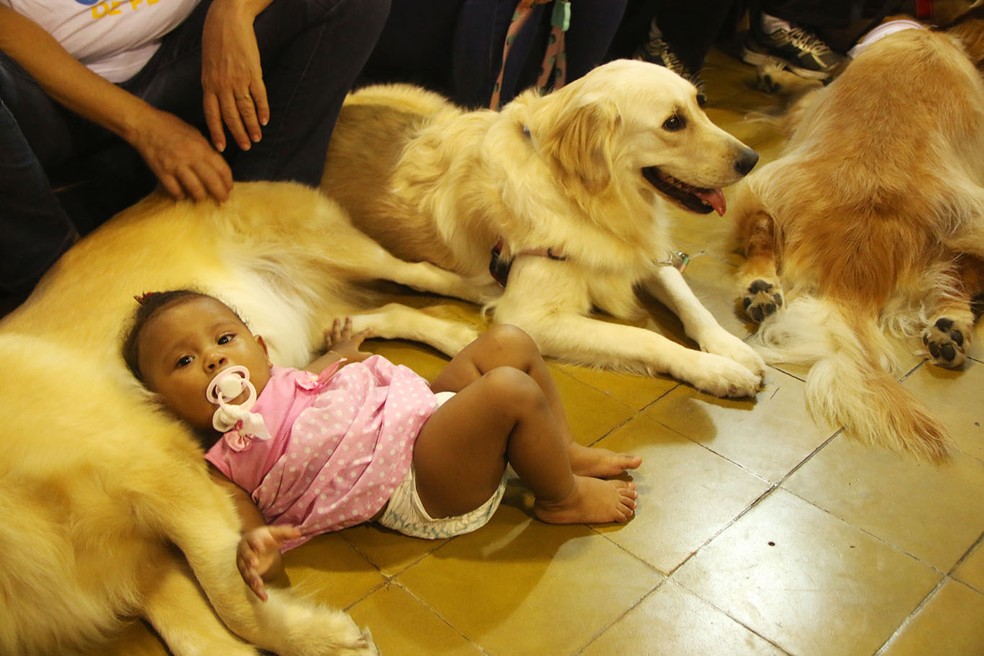 Seis cães da raça golden retriever auxiliam no tratamento de crianças com deficiência em Olinda (Foto: Maíra Correia/Prefeitura de Olinda/Divulgação)