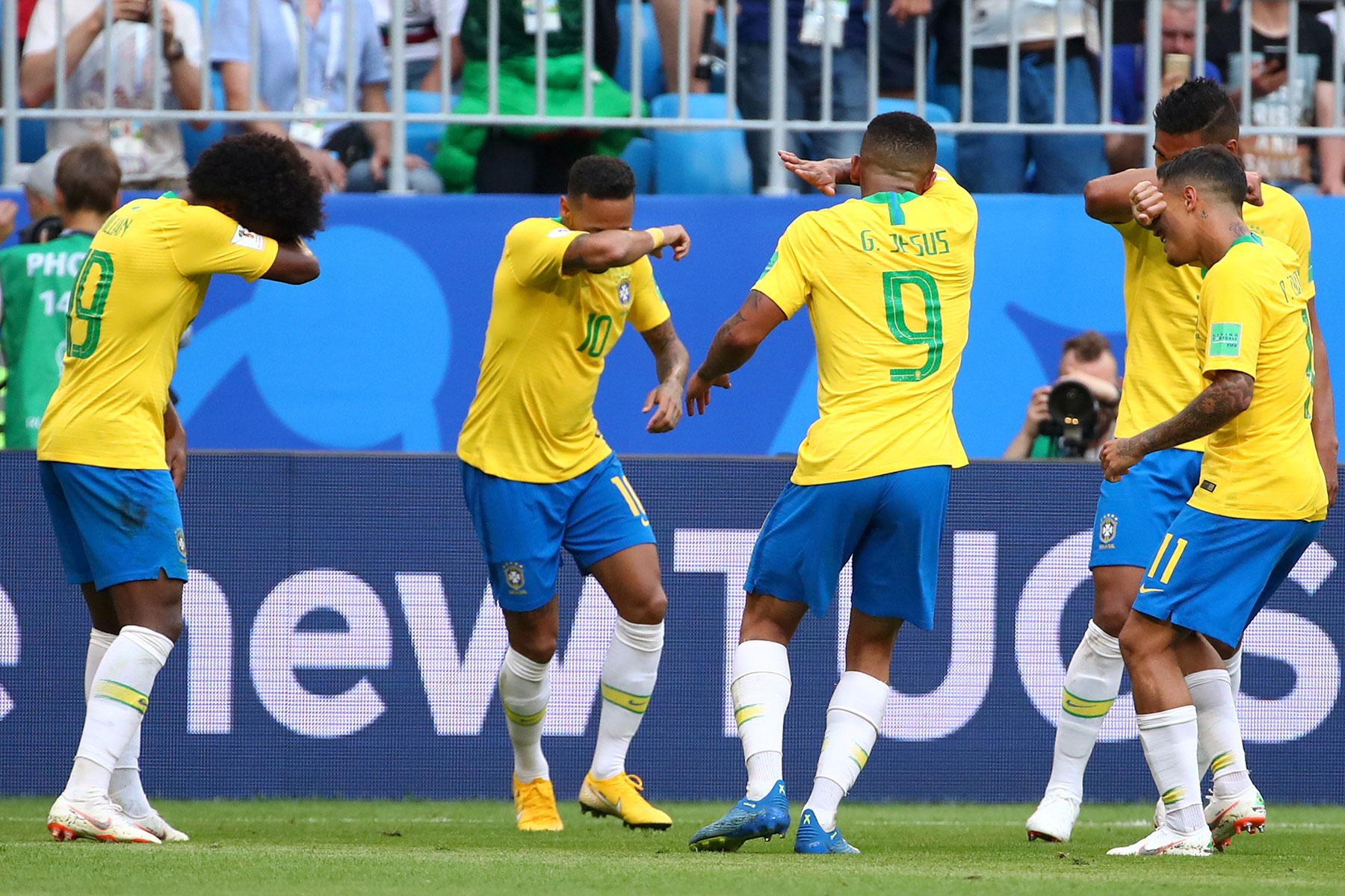 Neymar tocou de calcanhar na meia-lua para WIllian, que arrancou para dentro da área pela esquerda, chutou rasteiro, e Neymar completou de carrinho para o fundo das redes. Segundo gol do camisa 10 neste Mundial.